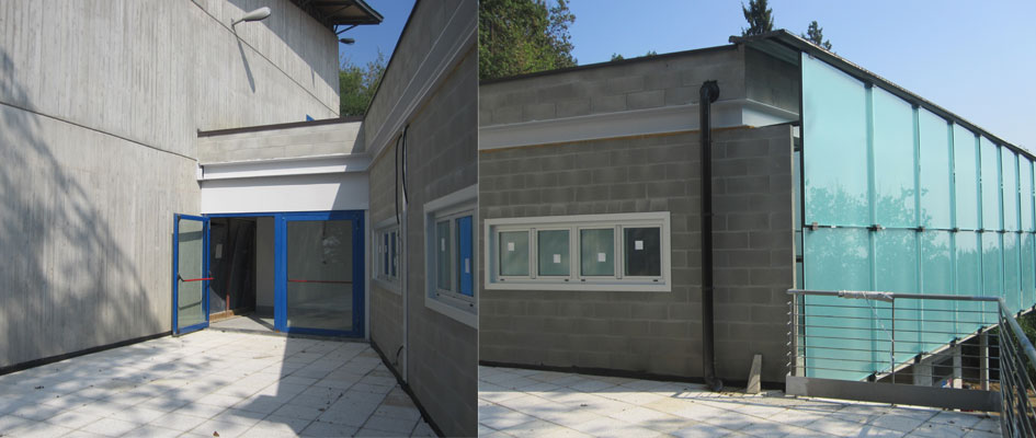 La somma di questi elementi è risolta con la creazione di un grande spazio aperto, con tutti gli elementi visibili e ben riconoscibili, una sorta di contenitore di funzioni in comunicazione tra loro e ben inserito nell’ambiente naturale per la aule e limitati spazi per uffici e servizi.