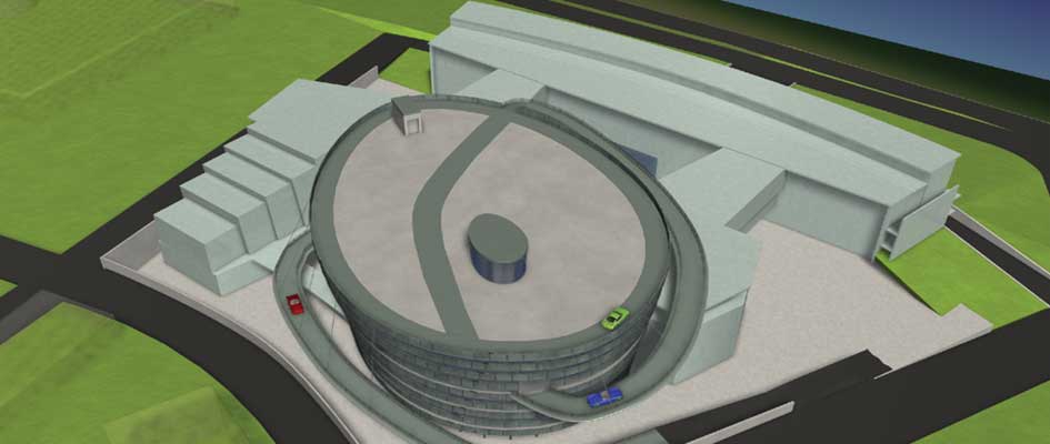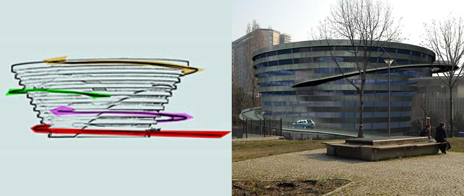 Il concorso, indetto dal Museo dell'Automobile "Carlo Biscaretti di Ruffia", richiedeva l'ampliamento del Museo dell'auto attraverso l'inserimento di un volume fortemente riconoscibile che determinasse una nuova immagine per il museo. La scelta è stata quella di inserire un grande tronco di piramide rovesciata a base ovale, bucata e attraversata da una rampa percorribile in auto fino al tetto.