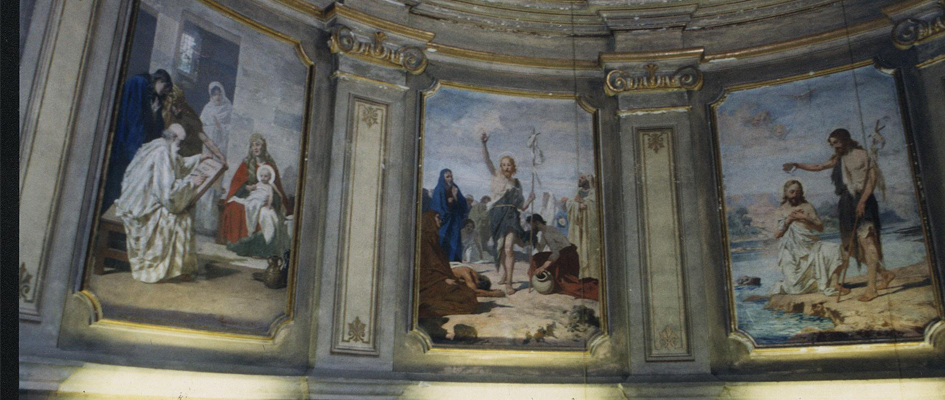 - scrostamento con messa a nudo della muratura degli intonaci di base sia nella navata centrale, sia nei pilastri, e ricostituzione degli stessi con trattamento traspirante;