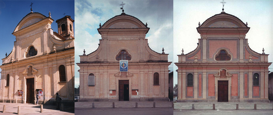 Questa prima chiesa antica appare nell’incisione del “ Theatrum Sabaudiae” del 1691, in seguito ci sono stati sicuramente ampliamenti e restauri cui fanno riferimento due lapidi poste alla fine del secolo scorso: modifiche che possono essere individuate facilmente nel rifacimento del pavimento, nella nuova sistemazione della facciata, nella decorazione di tutta la Chiesa e, probabilmente, nell’aggiunta della Sacrestia.