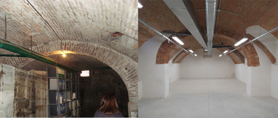 - Il risanamento dei locali interrati ha permesso l’ampliamento dell’attuale Archivio Storico attraverso la realizzazione di un archivio contemporaneo adeguatamente climatizzato e con armadi compattabili