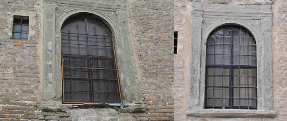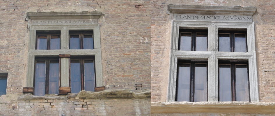 Un altro importante intervento è stato il recupero degli elementi architettonici cinquecenteschi mediante l'intervento di restauro delle finestre con cornice in arenaria, tutt'ora presenti sulla facciata principale, che versavano in uno stato di degrado avanzato con rischio di completa perdita degli ornati rinascimentali.