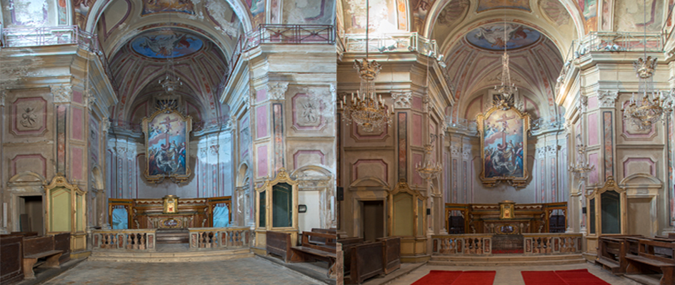 Prima dell'intervento la chiesa di Santa Croce risultava priva di impianti di illuminazione e di riscaldamento e non accessibile ai diversamente abili.