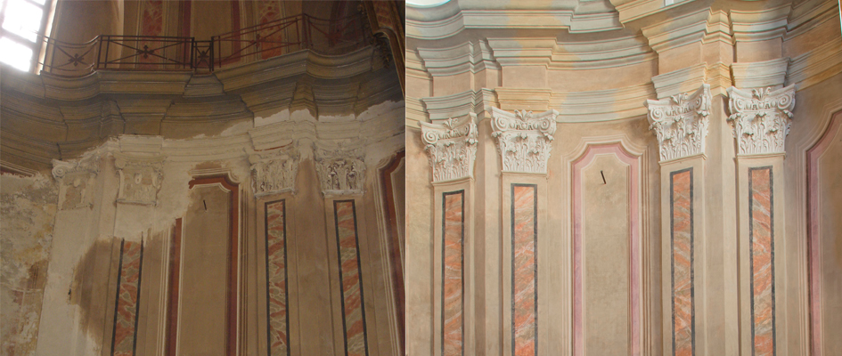 • Restauro delle pareti ovest delle cappelle laterali o transetto