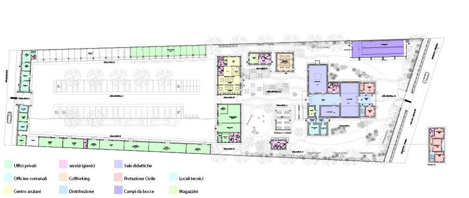 L’intervento prevede la rifunzionalizzazione dell’interno quartiere denominato Ex Macello con interventi architettonici, strutturali, impiantistici e di installazione di aree giochi e aree verdi nell’intero lotto di 7.700 mq circa. Le funzioni che si instaureranno saranno magazzini, centro ricreativo anziani, co-working, aule didattiche, servizi igienici, campi da bocce e uffici della Protezione Civile.